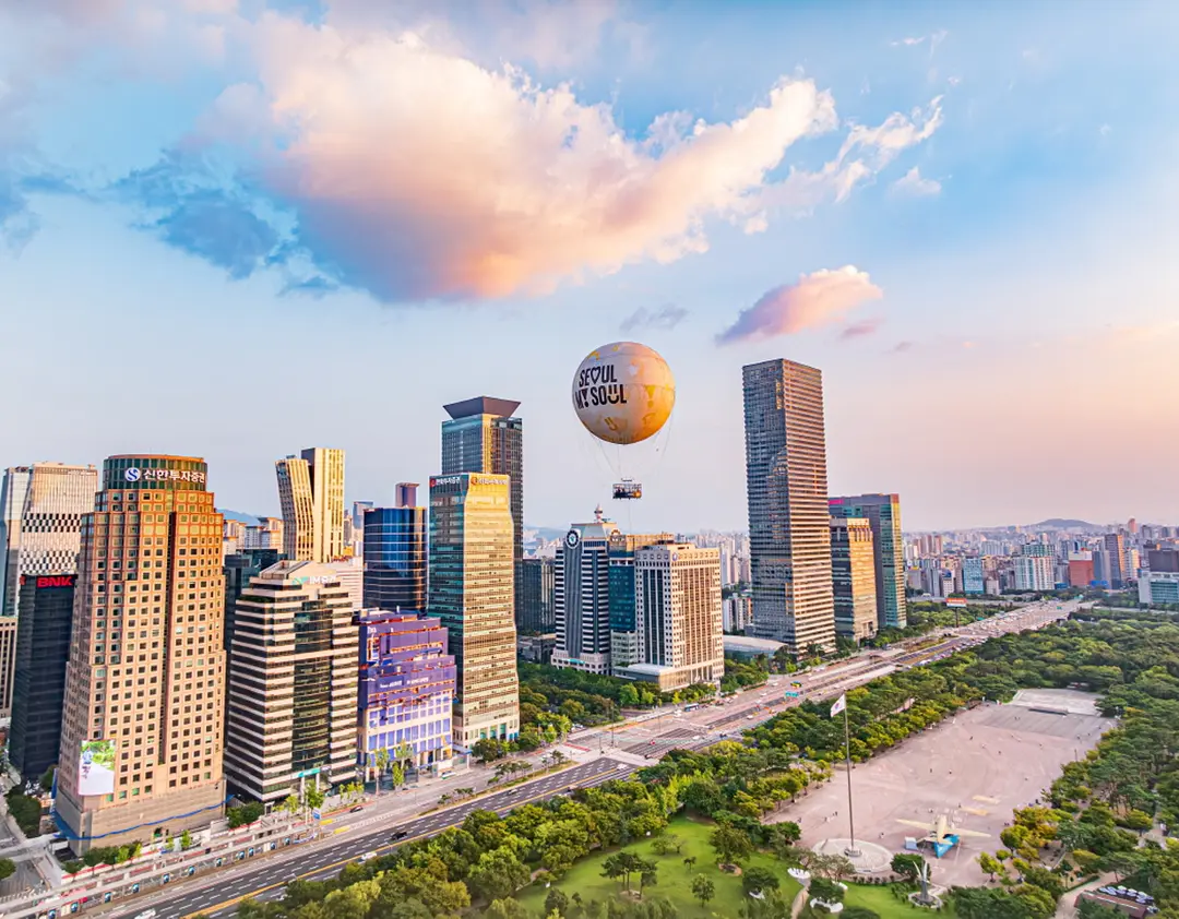 Experience Seoul like never before with SEOULDAL, a tethered helium balloon attraction that takes you 130 meters into the sky. Safely float above the city and enjoy breathtaking panoramic views of the Han River, Namsan, and other iconic landmarks, both during the day and under Seoul’s dazzling night lights. The name SEOULDAL, inspired by the full moon, means “the moon floating above Seoul,” perfectly capturing the feeling of drifting peacefully above the city. Whether you visit during the day for clear, vibrant scenery or at night for a romantic glow, SEOULDAL offers a safe, one-of-a-kind way to make unforgettable memories while admiring Seoul’s skyline.