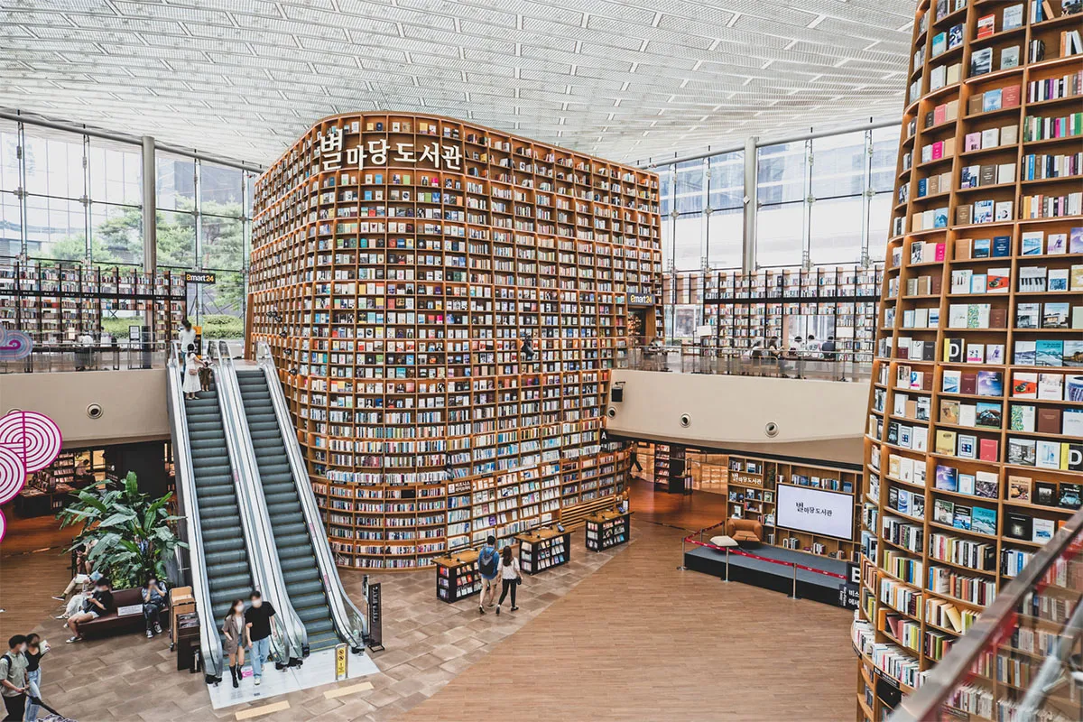 The tour continues to trendy Seongsudong, where old factories have turned into stylish cafés and design hubs, followed by Jamsil, a bustling area with shopping malls, Seokchon Lake, and family-friendly attractions. At Starfield Coex Mall, don’t miss the breathtaking Starfield Library, a beloved photo spot with towering bookshelves and warm lighting.
